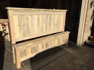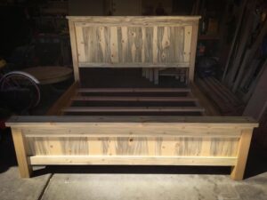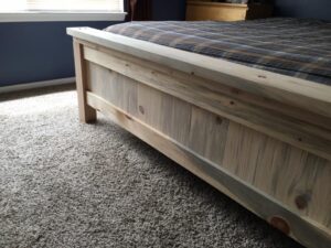 This is a solid, non-toxic Blue Pine King bed made with sustainably sourced wood from the Rocky Mountains of Colorado. All of our furniture is locally sourced and chemical free using non-toxic glue and sealer.